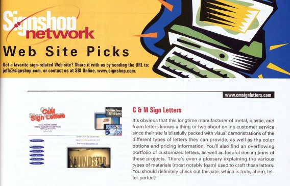 | "It's obvious that this longtime manufacturer of metal, plastic, and foam letters knows a thing or two about online customer service since this site is blissfully packed with visual demonstrations of the different types of letters they can provide, as well as the color options and pricing information. You'll also find an overflowing portfolio of customized letters, as well as helpful descriptions of these projects. There's even a glossary explaining the various types of materials (most notably foam) used to craft these letters. You should definitely check out this site, which is truly , ahem, letter perfect!" | |